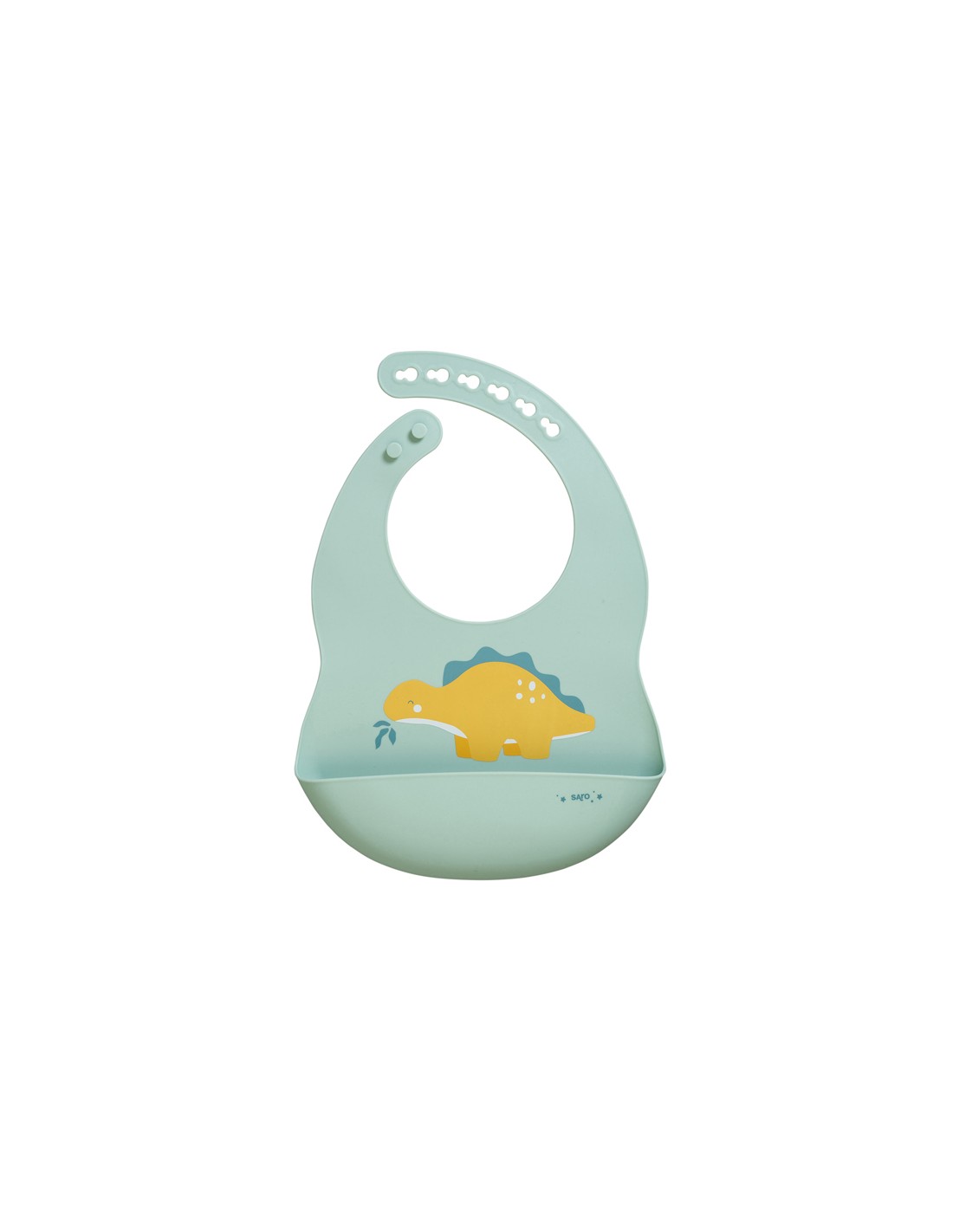 Babero blandito muy agradable de SARO. Tu aliado perfecto para que tu bebé aprenda a comer y disfrute experimentando con la comida. Práctico cuello regulable, muy fácil de poner y quitar. Fabricado en silicona alimentaria, un material eco-friendly, antibacteriano y extremadamente resistente. Diseñado con un práctico bolsillo recoge-migas que lo atrapa todo. Tamaño: 28 cm altura x 22 cm ancho. Packaging en blister de cartón colgable y bolsa de pvc protectora. Edad: +6 meses. Muy fácil y rápido de lavar.